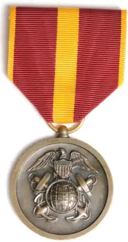 The Coast and Geodetic Survey Good Conduct Medal was awarded to any member of the crew of a Coast and Geodetic Survey vessel for exemplary behavior, efficiency, and fidelity in the line of duty under the jurisdiction of the United States Secretary of Commerce between 8 September 1939 and 28 April 1952.[1][2] Coast and Geodetic Survey personnel were not eligible for the medal for service they performed during periods in which they were under other jurisdiction, such as that of the United States Department of War or the United States Department of the Navy.[1]
