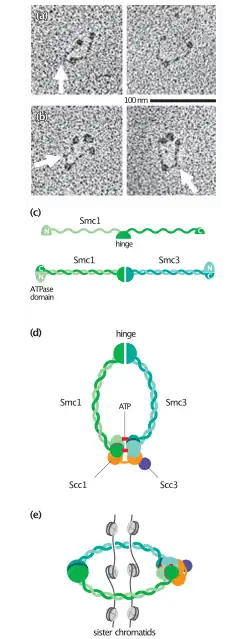 - ^ Haering, CH; Löwe, J; Hochwagen, A; Nasmyth, K (April 2002). "Molecular architecture of SMC proteins and the yeast cohesin complex". Molecular Cell. 9 (4): 773–88. doi:10.1016/s1097-2765(02)00515-4. PMID 11983169.