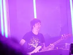 Greenwood mostly plays fingerstyle, and said he was unskilled with plectrums.[18] He mainly uses Fender basses and Ampeg and Ashdown amplifiers.[18] He also plays double bass on tracks such as "Pyramid Song" and "You and Whose Army".[18] While his main role is bass, Greenwood said each Radiohead member contributed to song development.[19] He said he did not think of himself as a bass player and was "just in a band with other people".[8] Among his influences are Booker T and the MGs, Bill Withers, Curtis Mayfield, Peter Hook and J Dilla.[5][18]