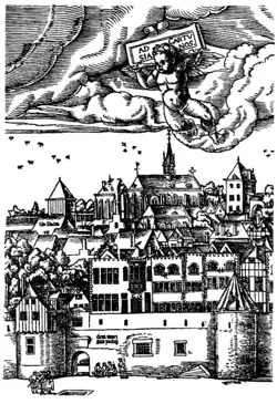 Of decisive importance in the first half of the 16th century and the early Protestant Reformation was the tenure of office as prior of Peter Blommeveen of Leiden, who had entered the charterhouse in 1489 after studying at Cologne University, and became its prior in 1507. While he was in office the founder of the Carthusian Order, Bruno of Cologne, was canonised, and like other charterhouses the Cologne Charterhouse received some of his relics, which had been re-discovered in 1502. Aegidius Gelenius lists in his catalogue of the treasures of the Cologne Charterhouse, published in 1645, among many other relics "two pieces of the skull of Saint Bruno".[14]