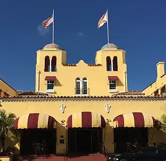 The Colony Hotel & Cabaña Club, in Delray Beach, Florida, is a Spanish Colonial Revival-style hotel dating from 1926, plus a separate beach-side recreation area with pool and cabañas. The hotel features Florida Mediterranean architecture in a three-story building with two domed towers.[1] It has been described as "the best known landmark" in Delray Beach.[2]