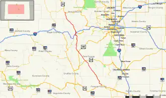 ![]() Map of central Colorado with SH 9 highlighted in red | ||||