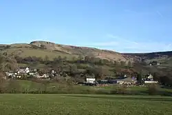 The village is bounded to the east, west and south by gritstone edges and moorland, the highest of which is Black Edge (507 m (1,663 ft)). To the north the embankment of the Buxton to Stockport railway separates it from Combs Reservoir. To the east is Castle Naze, a prehistoric settlement site.