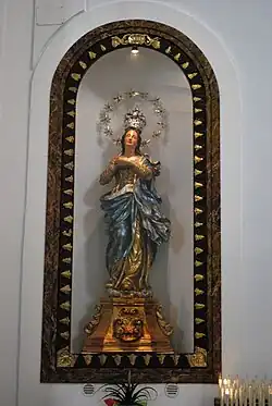 The present wooden statue, venerated in the Church, was carved in 1695 by Ignazio Ingrassia (a sculptor from Trapani)[1] at the expense of the members of the Company. It was gilded by Mariano Pisano: in 1738 this coating was modified by Gioacchino Restivo.[5] The statue, instead, has recently been restored in 1982 and in 2013.