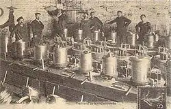 The Compagnie des Canonniers de Lille was formed in Lille in 1833.[5] Two boreholes were drilled in Wattignies and Loos,[5] outside the coalfield, where the coalfield was not reached, but the blue limestone was.[6] The Wattignies borehole had been drilled in 1784 and had already been re-drilled in 1822.[6]