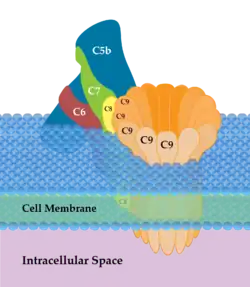1. ^ Xie CB, Jane-Wit D, Pober JS (2020). "Complement Membrane Attack Complex: New Roles, Mechanisms of Action, and Therapeutic Targets". The American Journal of Pathology. 190 (6): 1138–1150. doi:10.1016/j.ajpath.2020.02.006. PMC 7280757. PMID 32194049.