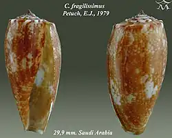 - ^ a b Conus fragilissimus Petuch, 1979. WoRMS (2010). Retrieved through: World Register of Marine Species on 25 September 2011.