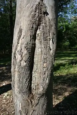 Coolamons are generally made by the men. They are usually made from a hardwood such as mallee. In Central Australia, the bean tree was often used. A piece of the outer bark of the tree is removed, then moulded over the fire to give it its distinctive curved sides. Deep ridges were made using a quartz stone knife. It needed to stand for a number of days, with a stick of wood holding it open to prevent it losing its shape. It may also be made of a knot or excrescence (“wirree”), from a tree.