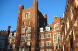 Several Cornell University buildings have been named National Historic Landmarks,[43] and ten have been listed on the National Register of Historic Places: Andrew Dickson White House, Bailey Hall, Caldwell Hall, the Computing and Communications Center, Morrill Hall, Rice Hall, Fernow Hall, Wing Hall, Llenroc, and Deke House.[44] Three other listed historic buildings, the original Roberts Hall, East Robert Hall, and Stone Hall, were demolished in the 1980s to make way for new campus buildings and development.[45]