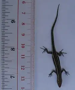 Cryptoblepharus virgatus, also commonly known as striped snake-eyed skink, cream-striped shinning-skink,[2] wall skink,[3] fence skink or snake-eyed skink, is a skink commonly found in northeastern Queensland.[4] It is an active little lizard, and if threatened will often play dead to confuse the attacker.