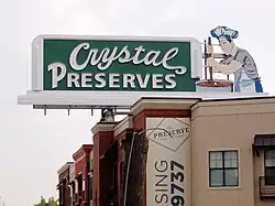 Originally based in New Orleans, Crystal was famous for its lighted sign featuring a chef stirring a pot of hot sauce with steam from the factory venting out through the pot. The sign was a New Orleans landmark on Tulane Avenue in Mid-City, visible from Interstate 10. The preserves advertised on the sign were found in U.S military rations during World War II, but are no longer produced.[3]