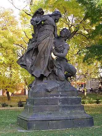 Ctirad and Šárka (Czech: Ctirad a Šárka) is an outdoor sculpture by Josef Václav Myslbek, installed at Vyšehradské sady in Vyšehrad, Prague, Czech Republic.[1][2] It depicts Ctirad and Šárka of Slavic mythology and the Bohemian tale The Maidens' War, when women after the death of Libuše built the castle Děvín lying on the opposite hill of the Vyšehrad.[3]