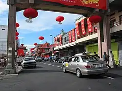 The Chinatown of Mauritius is situated in Port Louis. The Chinatown emerged in a city which is marked by the strong racial segregation of the 18th century.[37]: 133 A small Chinatown was already forming in Port Louis in the mid-1780s, and in the mid-1840s, Port Louis market was dominated by Chinese traders.[38]: 93 [39] The Chinatown was also divided by the Cantonese and the Hakka who showed hostility towards each other.[37]: 133 Port Louis Chinatown was originally developed around the shops of Fujianese and Cantonese immigrants in the north of Royal Road and was further expanded in the 20th century.[40]: 83 The Cantonese established their own neighbourhood at Royal Road and extended along Arsenal Road to La Rampe Road; they opened shops, restaurants, Kwongs (societies) and religious associations, which include the Chan Cha (founded prior to 1874).[40]: 163 [37]: 133–134 Between the 1910s and 1920s, Hakka commerce started to extend beyond the limits of the Old China Town along Royal Road; Hakka business would later expand to the South of Royal Road.[40]: 83, 87 In the 1940s, there was an influx of Chinese immigrants who arrived in Mauritius to open more businesses, and decided to settle around Royal Road in the heart of Port Louis, further developing what is currently known as the Mauritian Chinatown.[41]