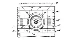 For the Aerocar Curtiss invented a new type of shock-absorbing fifth wheel hitch called the Aero Coupler (sometimes "Aerocoupler").[5] A similar hitch was used in The Brighton Trailer and may have been the hitch referred to (but not patented) in the Curtiss Camp Car patent of 1921. It consisted of a pneumatic aircraft wheel mounted horizontally within a square wooden (later aluminum) frame that was bolted to the rear of the tow vehicle (usually a modified coupe to accommodate the hitch) above its rear axle.[2] A king pin[41] mounted at the front of the Aerocar was inserted into the center of the wheel. Under tow the Aero Coupler's tire was inflated to a low pressure and would absorb shocks and vibrations from all directions. A patent for the "Curtiss Flexible Coupling" (US1916967[42]) was applied for on 8 June 1928 and granted on 4 July 1933, three years after Curtiss' death.