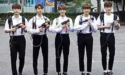 ![]() DKZ in September 2022 From L–R: Sehyeon, Kyoungyoon, Jaechan, Jonghyeong, Mingyu, and Giseok. | |