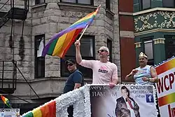 A man wears a shirt reading "Sissy Daddy" in the 2017 Chicago Pride Parade