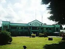 The Dagami Municipal Seal represents the town's humble achievements. The center of the seal shows the town's Municipal Hall (above), the seat of Dagami's local government. Its upper left side features the St. Joseph Parish of Dagami and the other side shows a faucet that represents Dagami as the source of fresh water of the Leyte Metropolitan Water District (LMWD), the local distributor of fresh water in the 1st District Leyte, namely where the capital of the Province is, Tacloban City. The lower part of the Seal on the left side symbolizes the Municipality's dependency on agriculture, and the other side features the local delicaicies of the town, especially the "Binagol" or sometimes known as "Lidguid". The major colors of the seal are green and yellow, the colours of the St. Joseph Parish, where the statue of the town's Patron Saint, Saint Joseph is enshrined and beautifully presented in a wooden and hand-decorated altar.