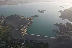 The Dahla Dam, also known as Arghandab Dam and Kasa,[2] is located in the Shah Wali Kot District of Kandahar Province in Afghanistan, approximately 40 km (25 mi) northeast of the provincial capital Kandahar.[3] Its name derives from Dahla, which is the historical name of the area where the dam was built.[4] It is the second largest dam in Afghanistan after the Kajaki Dam in neighboring Helmand Province. In 2019, the Afghan government planned to spend $450 million in upgrading the dam. The project includes raising the dam's walls by around 13 meters so the reservoir could hold nearly a billion cubic meters of fresh water and installing three turbines to produce 22 megawatts (MW) of electricity.[5][6]