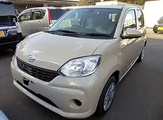 The Daihatsu Boon (Japanese: ダイハツ・ブーン, Hepburn: Daihatsu Būn) is a subcompact car produced by Japanese automaker Daihatsu since 2004, and also sold under Toyota brand as the Toyota Passo (Japanese: トヨタ・パッソ, Hepburn: Toyota Passo) between 2004 and the ends of 2023. The Passo was once sold at Toyota Corolla Store Japanese dealerships until it was consolidated with other Toyota dealers in 2020.
