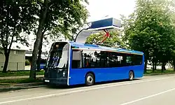 Dancer Bus is an electric bus designed and produced by Vėjo Projektai UAB in Klaipėda, Lithuania. The electric bus is manufactured of composite materials, including recycled PET bottles. The vehicle is 12 metres (39 ft) long, equipped ZF electric drive. In-wheel traction motors are currently in development.[1] Fully charged bus can ride a distance of up to 90 kilometres (56 mi).[2] The lithium-titanate battery fully charges in less than 10 minutes. The capacity is 93 passengers with 32 seats and one space for a wheelchair.[3] The bus is certified in the European Union.[4] In April 2020, two buses were purchased by the Klaipėda City Municipality to be used for public transportation.[3]