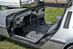The DeLorean Motor Company (DMC) was an American automobile manufacturer formed by automobile industry executive John DeLorean in 1975.[1] It produced just one model, from early 1981 to late 1982—the stainless steel DeLorean sports car featuring gull-wing doors. Its history was brief and turbulent, ending in receivership and bankruptcy in 1982. In October 1982, John DeLorean was videotaped in a sting operation agreeing to bankroll drug trafficking, but was acquitted at the subsequent trial on the basis of entrapment.[4]