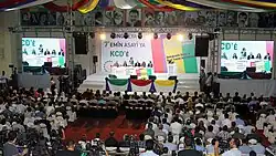 It has 2 co-chairs, a chairman and a chairwoman, a general assembly with 501 delegates, an executive council of 21 members and several committees.[1] 40% of the delegates of the general assembly are represented by labour unions, civil society organizations and political parties, 40% are representatives from local assemblies.[2] The congress meets approximately every three months to discuss the resolutions which come from the distinct committees.[3] The DTK has assemblies in several administrative subdivisions like in districts, cities, villages and neighborhoods.[4] For each street in a neighborhood, there should exist a commune.[5] These are then followed by assemblies in their respective neighborhood, town, city or region.[5] Each commune is independent in their decision making process but is still in a relationship with their respective neighborhood council which coordinates the decisions in the different communes.[5] The DTK has an executive committee of 5 members, a coordination council with 13 members and a permanent assembly of 101 delegates.[6] Several committees are formed by the DTK.[6][1]