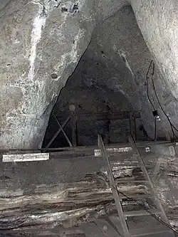 In the 1970s, Russian scientists discovered paleoarcheological remains in the cave that led to further explorations.[12] So far, 22 strata have been identified, with archeological artifacts that cover the time from Dyonisiy back to about 125,000–180,000 years ago.[11] The dating of the strata was accomplished by the use of thermoluminescence dating of sediments, or, in some cases, radiocarbon dating on charcoal.[11]