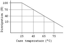 Power semiconductor devices have a maximum power dissipation rating usually quoted at a case temperature of 25 °C (77 °F). The datasheet for the device also includes a derating curve which indicates how much a device will dissipate without getting damaged at any given case temperature, and this must be taken into account while designing a system.