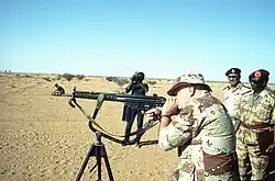 The Desert Battle Dress Uniform (DBDU)[4] is a U.S. arid-environment camouflage battle uniform that was used by the United States Armed Forces from the early 1980s to the early to mid 1990s, most notably during the Persian Gulf War. Although the U.S. military has long since abandoned the pattern, it is still in widespread use by militaries across the world as of the early 2020s.