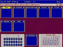 By the time Personal DeskMate was released with the Tandy 1000 EX, it was a GUI that acted as a portal for many other office productivity applications. The DeskMate application would run on top of MS-DOS. The user interface was made up of text. The applications that made up the suite were: