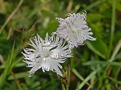 Dianthus monspessulanus, the fringed pink, is a herbaceous perennial plant of the genus Dianthus of the family Caryophyllaceae. The genus name Dianthus derives from the Greek words for divine ("dios") and flower ("anthos"), while the species name monspessulanus means "from Montpellier".