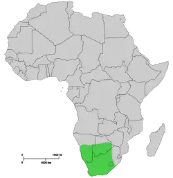 The southern black rhinoceros, southern hook-lipped rhinoceros or Cape rhinoceros (Diceros bicornis bicornis) is an extinct subspecies of the black rhinoceros that was once abundant in South Africa from the Cape Province to Transvaal, southern Namibia, and possibly also Lesotho and southern Botswana. Zoos, animal sanctuaries and conservation centers use this same scientific name as an indicating reference to the surviving south-central black rhinoceros. This former species was brought to extinction by excessive hunting and habitat destruction around 1850.[1][2]