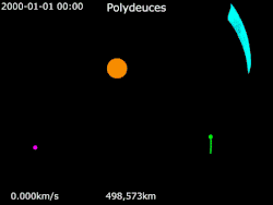 - Polydeuces – moon at Dione's trailing Lagrangian point, L5