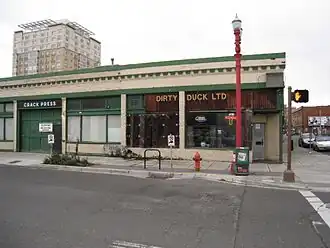 The Dirty Duck building, or Dirty Duck Tavern building,[3] was located at the intersection of Northwest Third Avenue and Glisan Street in Portland, Oregon's Old Town Chinatown neighborhood, in the United States. Originally called the Kiernan Building, the one-story structure earned its nickname from Gail's Dirty Duck Tavern, a gay bar that served as a tenant for 25 years.