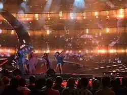 On 24 May 2008, with Wahls declared healthy,[21] No Angels started at number four during the show, following Albania's entry Olta Boka with "Zemrën e lamë peng" and preceding Armenia's Sirusho with "Qele Qele."[24] An estimated 100 million fans watched the show, and viewers from all 43 participating nations voted for their favourite performers via text message and telephone.[24] The band eventually ranked 23rd place out of the 25 countries that participated with a total of 14 points – taking twelve points from Bulgaria, Diakovska's native country, and two points from Switzerland. Only Poland and the United Kingdom placed below the four-member female band.[24][25] While never considered a pre-contest favourite (online betting firms such as Paddy Power previously put Germany's chances of winning at 100 to 1, in the lowest third of competitors),[25] the band was heavily criticized for their performance,[21] which they themselves later described as a failure, attributing bad in-ear sound and a high level of stage fright.[21] As a direct consequence, planned recordings for the band's next studio album during the summer were indefinitely delayed,[26] and the group went on a two-month hiatus to rethink and analyze the past year.[26] The following year, "Disappear" was succeeded as German representative at the Eurovision Song Contest 2009 by Alex Swings Oscar Sings (Alex C. and Oscar Loya) with "Miss Kiss Kiss Bang."[27]