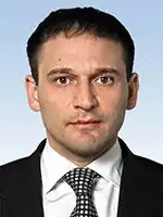 Dmytro Markovych Dobkin (Ukrainian: Дмитро Маркович Добкін; born on 8 January 1974), is a Ukrainian politician who had served as a member of parliament, a people's deputy of Ukraine of the Verkhovna Rada, as a member of the Party of Regions and the Opposition Bloc from 2012 to 2019. He is a younger brother of politician Mykhailo Dobkin.