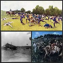 Clockwise from top left: Siege of the San Luis Fortress, Dominican forces clash with a Spanish garrison in the Battle of Santiago (1863), Dominican Mambi ambush on the Spanish forces, José de la Gándara's Plan of Monte Cristi (1865), and the Battle of Monte Cristi. | |||||||