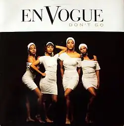 "Don't Go" is a song by American group En Vogue. It was written by Denzil Foster and Thomas McElroy for their debut album Born to Sing (1990). One of the first recordings for its parent album, the song is a mid-tempo ballad informing the male lover that his female counterpart still cares for him and does not want him leave. It features a lead vocal progression by Terry Ellis displaying her vocal range. Released as the album's fourth and final single in April 1991, "Don't Go" peaked at number three on the US Billboard Hot R&B Singles chart, but failed to chart on the Billboard Hot 100.