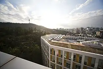 Dongguk University's main campus is located in Jung District, Seoul, just north of Namsan. The upper buildings of the campus are directly connected into the trails of Namsan park.