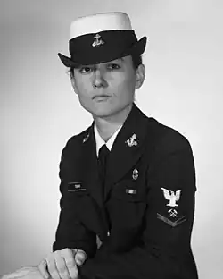 Upon enlisting in the Navy in March 1974, she asked a Navy recruiter about the possibility of her becoming a diver. She was refused entry because of her sex and instead chose to focus on shipfitting and hull technician.[4] While working as a shipfitter and hull technician for the Navy, she applied for a waiver to attend dive school.[5] She was required to get permission from The Pentagon before being assigned to training in Norfolk.[2]