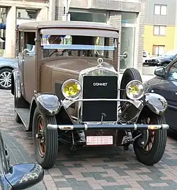 Jérôme Donnet purchased Automobiles Zedel of Pontarlier, Doubs, France in 1919,[1] and changed the name of the enterprise to Donnet-Zedel. From this factory, he made the Donnet-Zedel CI-6 with a 2120 cc engine, a design originating from 1912. A new car, the 1098 cc Type G was introduced in 1925 and it sold well, helping Donnet to become France's fourth largest car maker in 1927.[2] The Type G was made in a former Donnet aircraft factory at Gennevilliers, Seine. Most of the cars produced by Zédel, Donnet-Zédel and Donnet were powered by four-cylinder engines. The Zédel engine had a displacement of 3168 cc, and the Donnet-Zédel 1100 or 2120 cc. The Pontarlier works was sold in 1928 and the Zedel part of the name was dropped. An expanded range of cars appeared as production relocated to the Paris hub in the late 1920s.