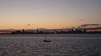 Dorchester Bay is the smallest of the three smaller bays of southern Boston Harbor,[1][2] part of Massachusetts Bay and forming the south shoreline of the South Boston neighborhood and northeast shoreline of the Dorchester neighborhood of Boston, as well as the north shore of the city of Quincy in Massachusetts.[3]