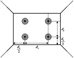 With this specific grid layout reflections from the walls act as mirror sources. Interference of the subwoofers and mirror sources create a plane wave up to a certain frequency. The more sources the higher the frequency. This cutoff frequency can be calculated for each dimension as follows: