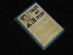 Retailer sample of Corrigan's autobiography That's My Story consisting of only the first chapter and all the illustrations followed by blank pages. The sales blurb pasted to the front cover explains it all.