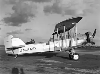 The XT3D torpedo bomber (BuNo 8730) first flew in 1931.[1] It has been described as a "large and ugly" aircraft.[1] Of metal construction with a fabric covering the XT3D had folding wings and an arrestor hook for carrier operation.[1] With a fixed tailwheel landing gear and powered by a Pratt & Whitney R-1690 Hornet radial engine,[1] the XT3D had three open cockpits, forward for the gunner/bomb-aimer, center for the pilot, rear for another gunner.[1]