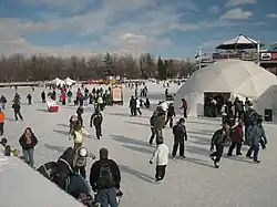 During the winter, Dow's Lake freezes and becomes part of the world's longest skating rink and one of the primary sites of the Winterlude festival in February, with events such as "bed races" and "waiter races" on the ice.