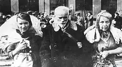 On 18 September 1944, a two-person delegation from the International Red Cross, led by Dr. Paul Wyss (a Swiss citizen), arrived at the camp. The Germans then improvised a comfortable transport for the refugees.[64] Passenger cars were waiting on the platforms, some halls were cleaned up (with part of the population removed in advance), and the prisoners were given better meals. Dr. Jadwiga Oszkielowa, who despite threats from the Germans presented the Red Cross delegates with the true situation of the refugees, was punished by having her access card to the camp revoked. She was also threatened with arrest.[66] After the departure of the Red Cross representatives, the situation in the camp returned to its previous state.[67]