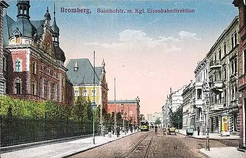 Dworcowa Street is one of the main streets of Bydgoszcz, in Downtown district (Polish: Śródmieście). Many of its buildings are registered on the Kuyavian-Pomeranian Voivodeship Heritage List.