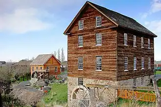 On April 24, 1850 Ezra T. Benson visited the new settlement and organized the first LDS branch with Rowberry as Bishop. By late Spring and Summer of that year more Mormon settlers came into the valley including Peter Maughan and his family.[16] Tooele County was organized in April 1851 with Peter Maughan appointed to the position of County Clerk. In 1852 Settlement Canyon Fort, which included Peter Maughan's home, was dissembled and moved closer to present day city center in Tooele. In November 1853, Maughan, Rowberry, and Bates were appointed a committee to both "...locate E.T. City and for building a dam at Rock Springs [Adobe Springs Creek]." In 1854 $700 was expended to build the dam, which failed because the water seeped through an underground passage so that water would not rise. The committee then had to spend an additional $300 to bring water from Twin Springs to the location of the new settlement; Twin Springs was the same source of water for the Benson Grist Mill which was completed that same year. In August 1854 the Maughan house was dissembled and moved for a second time, now to the location that was selected for E.T. City. There were others who joined him who built small houses along the north-south road. In October 1854, Maughan was appointed as the Presiding Elder over E.T. City.[17][18] According to the Utah Centennial County History Series, E.T. City was a precinct named after Ezra Taft Benson that extended from the Benson Grist Mill to E.T. Hill (Adobe Rock), and all the way over to Black Rock (Great Salt Lake). This was formalized in 1855 by Ezra Taft Benson who represented Tooele County in the Utah Territorial Legislature.[19]