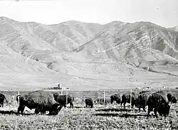 The acquired Clinton land and the buffalo were part of a real estate scheme to sell subdivided cottage lots with beautiful planted trees, gardens, and culinary water wells with the tourist attraction of a Buffalo Park. The venture was unsuccessful and on February 18, 1893, Glasmann’s Buffalo Park Land Company sold its seventeen American bison to John E. Dooley. The bison were herded around the lake up to Farmington and loaded on a flat boat to become the nucleus of the buffalo herd on nearby Antelope Island.[27]